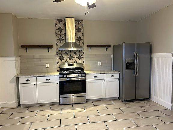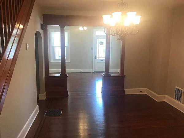 Totally remodeled 2BR, 2 Bath home. Hardwood floors in living room, dining room and bedrooms. Kitchen has quartz countertops as well as garbage disposal, dishwasher, gas range, microwave and side by side refrigerator. Laundry room off kitchen with washer and dryer included. Full bath on first floor. Two large bedrooms upstairs as well as walk in hall closet. Second floor has full bath. Walk up third floor attic as well as full basement for additional storage space. Outside there is a fenced yard as well as a large shed. Tenant to handle snow and ice removal. Landlord does lawn maintenance.