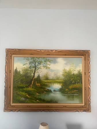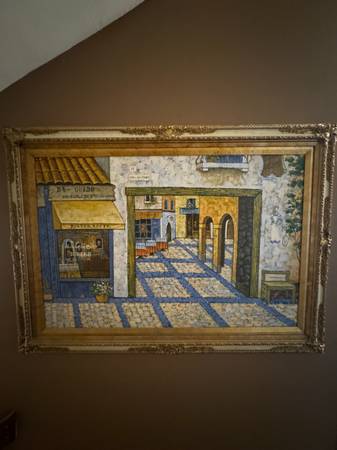 One framed scenic nature painting / One framed Italian cafe painting $35/each or $60 for both