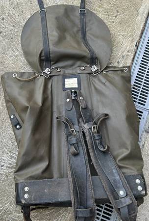 Heavy duty vintage leather and heavy vinyl backpack $60