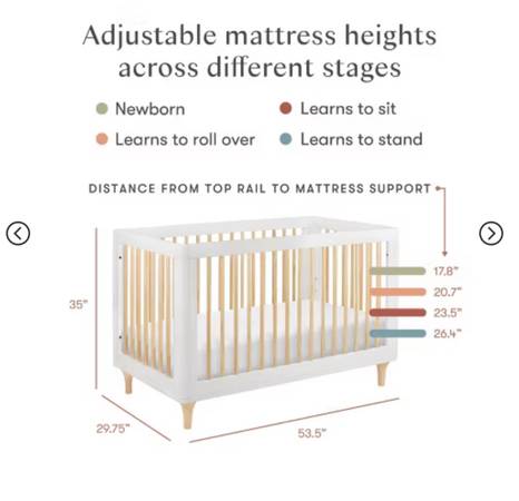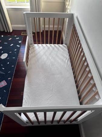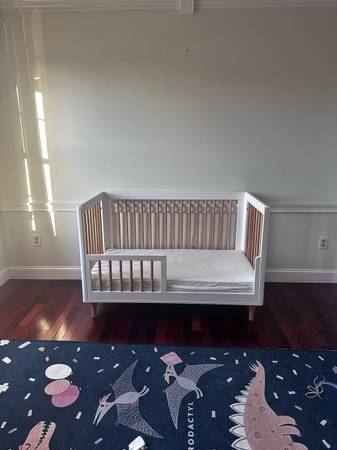 Babyletto Lolly 3-in-1 Convertible Crib with Toddler Rail for $200 and includes the Newtown mattress with mattress protector. My son hasn’t used it in over a year and it’s in great condition. Start with the crib and transition to the toddler bed. It also has adjustable mattress levels.