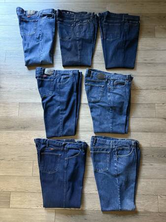 Excellent condition $8 each Wrangler Lee Rustler Member’s Mark And Amazon Basics Some have white spots which is dried starch, will come out in the wash From a smoke free and pet free home