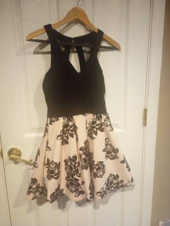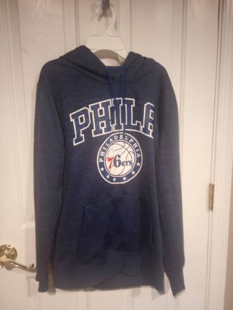 Sixers hoodie - $5 Guns N Roses hoodie - $8 - men's large Denim jacket - $5 - women's small Red dress - $5 - women's small Blue & white flowered dress - $3 - women's medium Black & pink...
