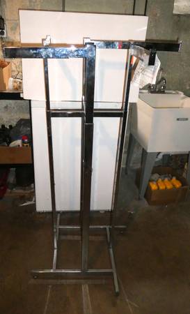 For sale, Industrial Commercial Grade Chrome Adjustable Clothing Rack. THis rack is very sturdy and in good condition. This rack is from a former closed K Mart Store. Price $ 25 cash only and I do...
