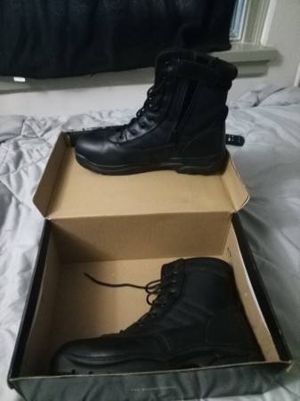 I I have two sets of steel-toed boots one pair is size 11 for $20 the other set is size 14 for $20 I also have three pairs of waimea jeans with all three of them have the waist size 40 two of the jeans are length of 36 and one of the pair of jeans is length of 33 all three pairs of pants together are $40 show contact info