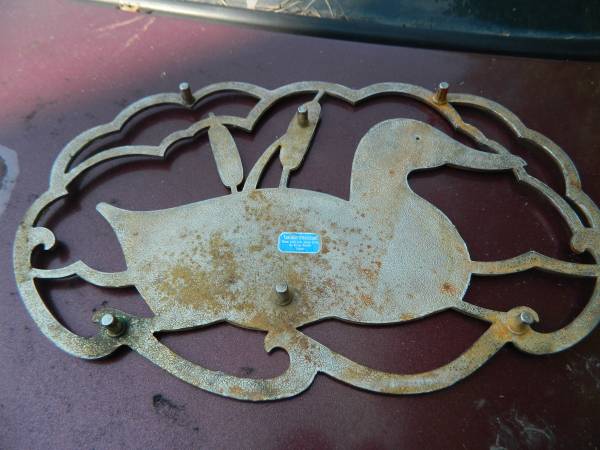 Duck 10 1/4 inch brass trivet used condition . $15.00 call 484 -nine four eight -0271
