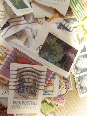 assortment of used US postage stamps. Most are recent commemoratives on paper. but there is a mix of ages, types, and some off paper. did not count, but it's 2 bank envelopes full. some duplication, very good condition. Pick up only.