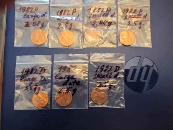 Set(7 coins) 1982-P and D cooper and zinc cents. Large and small dates.