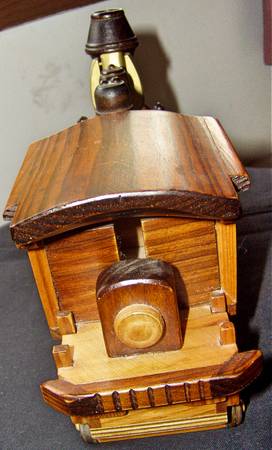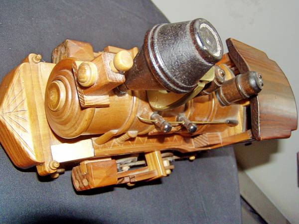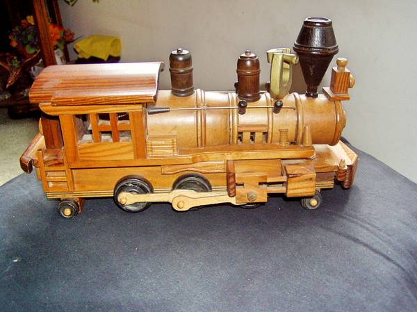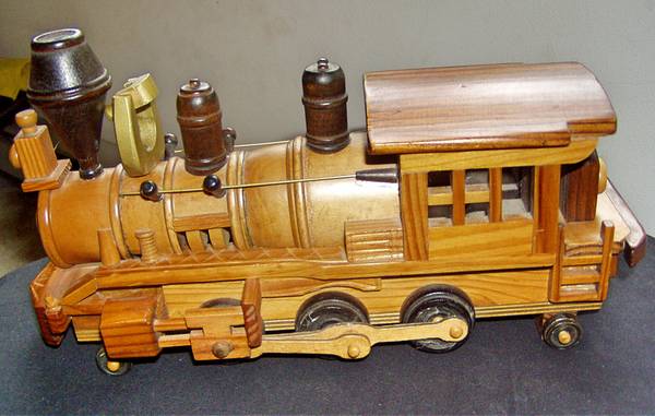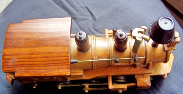 Handcrafted Wooden Train Steam Engine/ Locomotive No scratches or chips was displayed in a glass case