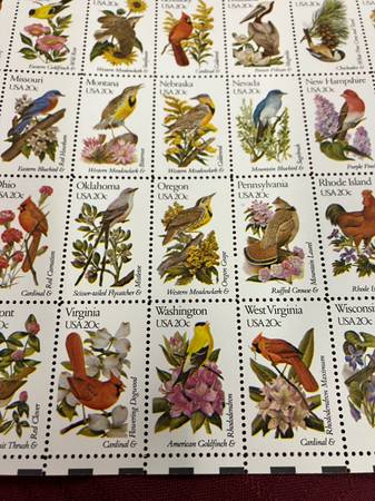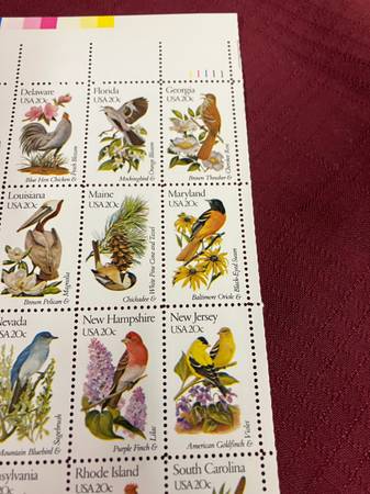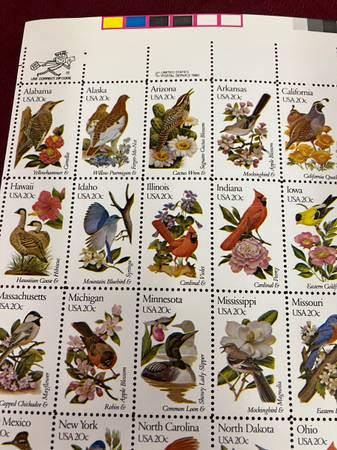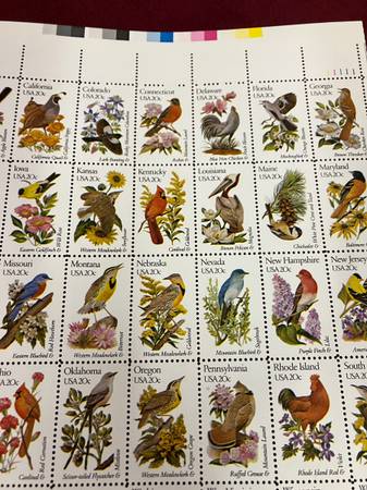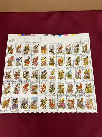 THIS IS A FULL SHEET OF BIRD STAMPS IN PERFECT CONDITION. THE SHEET STILL HAS COLOR CODE AT TOP.