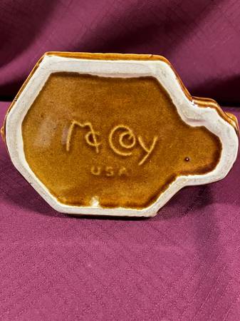 ITS 6 1/2 H X 6 1/2 X 4 1/2. AND HAS MCCOY AND USA ON BOTTOM.