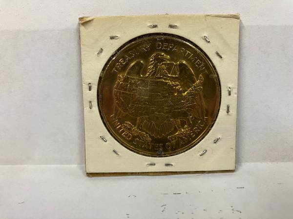OTHER SIDE HAS EAGLE WITH TREASURY DEPARTMENT. UNITED STATES OF AMERICA. IT IS INCH AND A HALF IN DIA. APPEARS TO BE IN GREAT CONDITION. FROM RESEARCH IT APPEARS TO BE BRONZE.