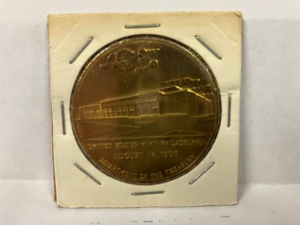 REVERSE HAS AN EAGLE WITH THE LETTER P BELOW IT. IT IS AN 1 1/2 IN DIAMETER. FROM WHAT I SAW ONLINE MATERIAL IS BRONZE. IN GREAT CONDITION.