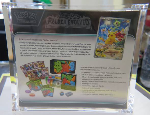 MINT CONDITION POKEMON ETB WITH PREMIUM ACRYLIC CASE AVAILABLE BUYING LARGE COLLECTIONS AS WELL AS COINS CURRENCY GOLD SILVER & PRECIOUS METALS