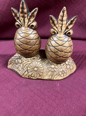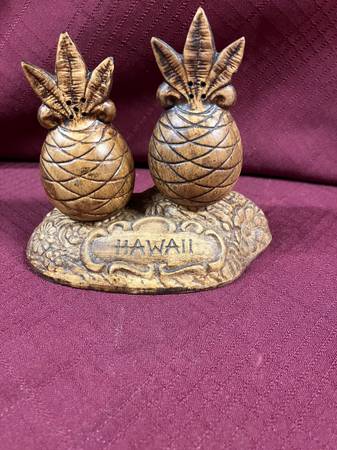 S&P SHAKERS FROM HAWAII. BOTTOM HAS NORMAL MAKERS MARK. IN AWSOME CONDITION. ONE OR TWO TINY RUB MARKS WHERE THE PINEAPPLES SIT. WILL BE FOR PORCH PICKUP. LOCAL DELIVERY IS NEGOTIABLE. THANKS...