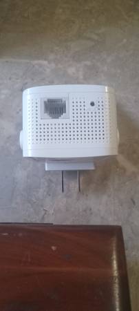 Tp-link 300 mbps wifi range extender that plugs right into the wall.has the capability of broadcasting 5.0gh and 2.4gh signals and has wps button for easy connectivity.