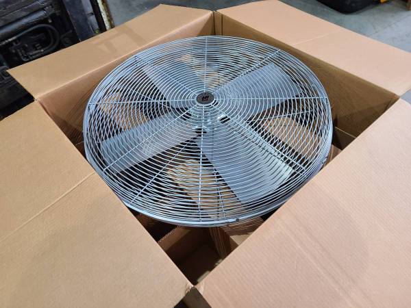 New out of the box. These are not cheapie harbor freight junk. 3 speed oscillating (or you can switch them to stationary). We have post mount and pedestal type in stock.