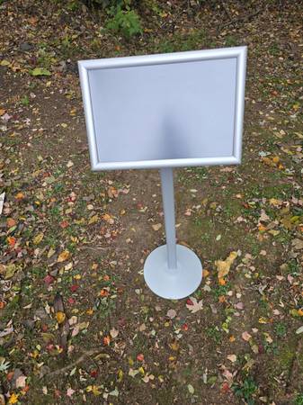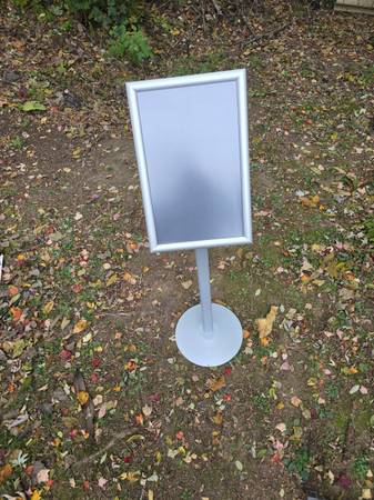 Restaurant Menu Stands. Available in Silver, some black. Opens easily to replace sings you want to display. Brand new. 11 x 17 frame attached Retails for $100+ Buy in Bulk at $25 each Must pick up.