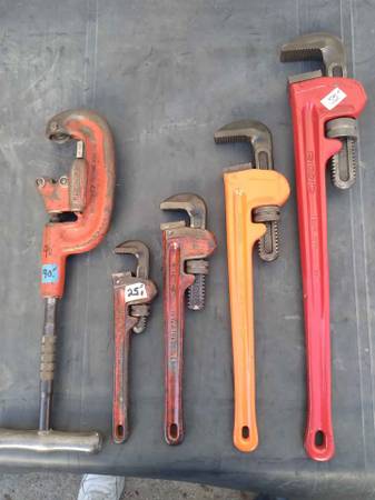 Ridgid pipe wrench set in real clean condition . (Reconditioned)