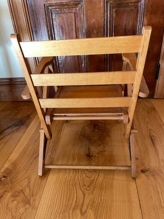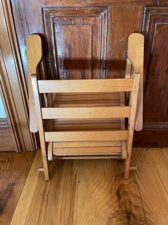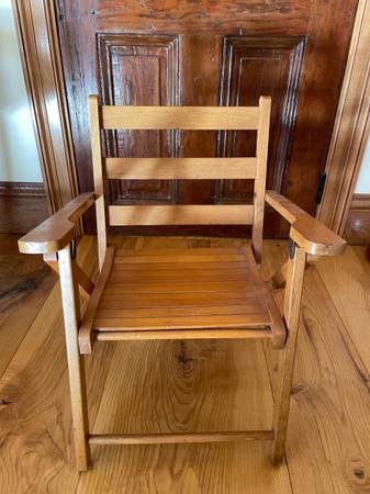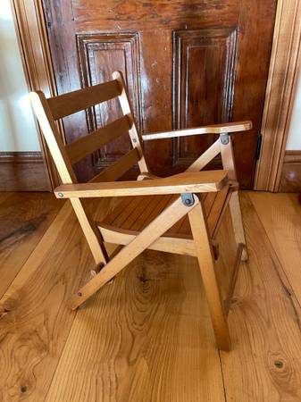 Child’s chair made of maple . Folds up Good condition. Asking $25.