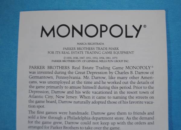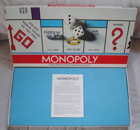 - Vintage MONOPOLY ... 1973 Parker Brothers Monopoly Real Estate Trading Game. $20.00 Cash Only. * The board measures 20" x 20" and folds in half. Excellent Condition and Complete with all Game...