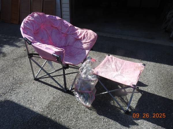 Have a pink lounge chair and ottoman. Nice soft velour-type fabric- used only once. Very clean. Comes with carrying bag. Located outside of Alburtis, near Creamery Park. Quick pickup preferred....