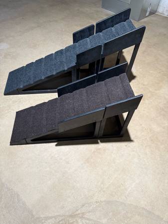 Set of two gently used small dog ramps from a clean, smoke-free home. One bed ramp, 53” x 24” x 14.5” One sofa ramp, 38.5” x 18” x 13.5”