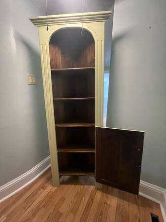 2- beautiful very well made country wooden cabinets . The 1- tall cabinet , I used without the door on it . But I do have the door included. If you chose to have it back on you can do that as well. 80.00 dollars for both .call/text if interested, you must pick up . Cash only deal thanks .