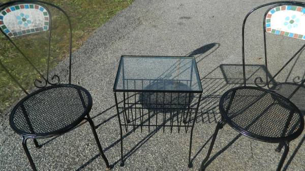 two metal chairs with end table with glass top $75.00 call 484 -nine four eight- 0271
