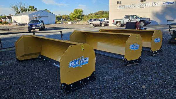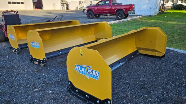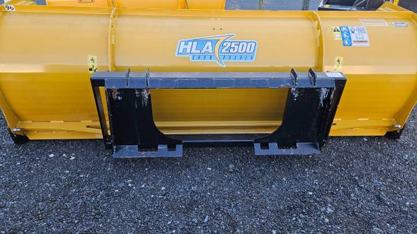 HLA Snow Pusher. 3 in stock model # SP2500. 96" width, rubber & steel cutting edges, adjustable side skid shoes, skid steer style attaching plate, all units are in new condition, price is for each snow pusher. For inquiries call show contact info