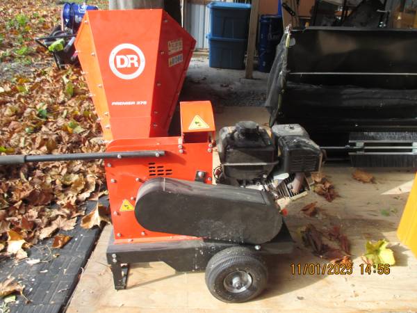 Self-Feeding with High Discharge! Chip branches up to 3.75" in diameter High discharge for easy collection of chips Towable with lawn tractor or ATV 9.2 HP (13.3 ft-lbs) DR OHV engine. Maintenance...
