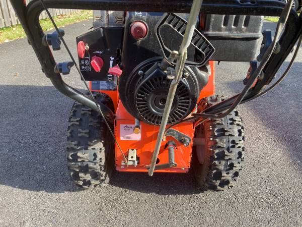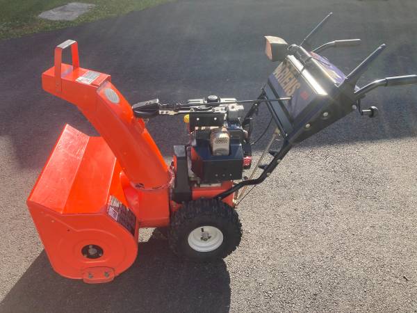 Ariens 2 stage snowblower in good working condition. 8 hp, 24 inch path, six forward speeds, and two reverse speeds. This has a work light, and electric start. New carburetor, and fresh oil. Ready for this winter.