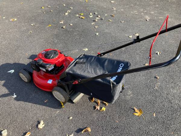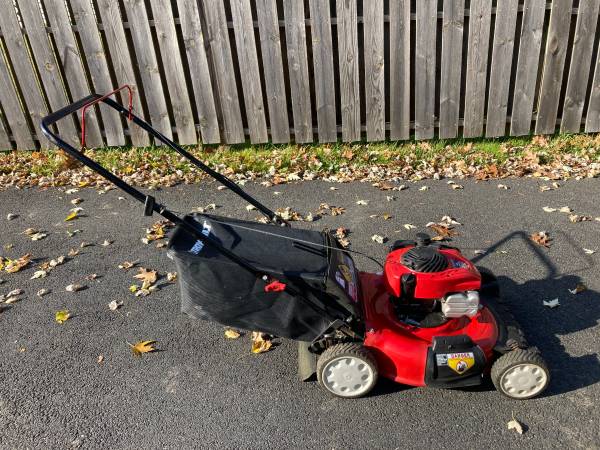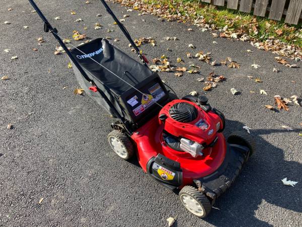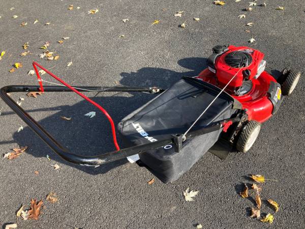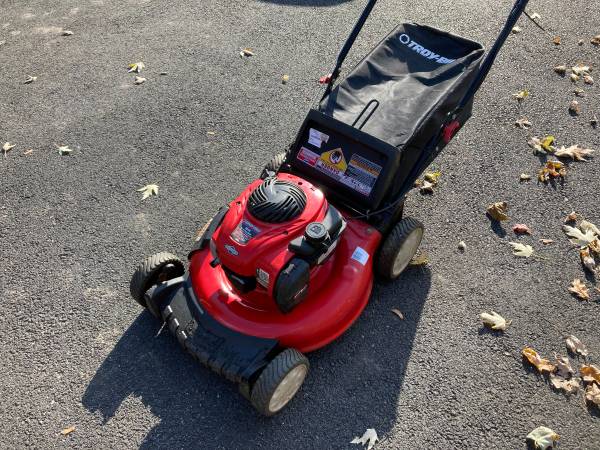 Troy Bilt 21 inch mulcher bagger push mower in good working condition. Carb cleaned, fresh oil, and blade sharpened. This is not self-propelled. Bag included. Ready to mow grass.
