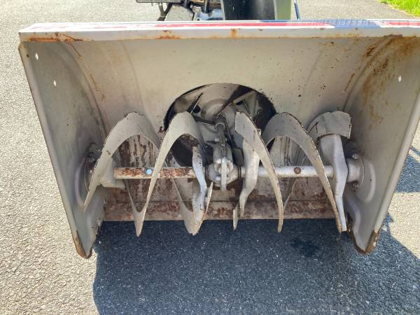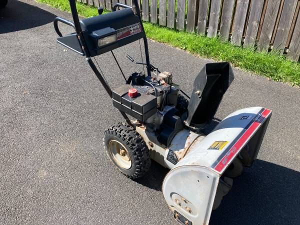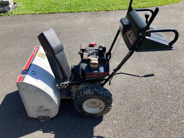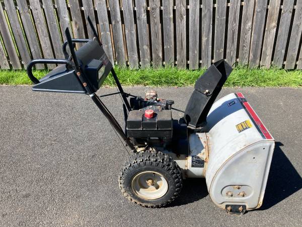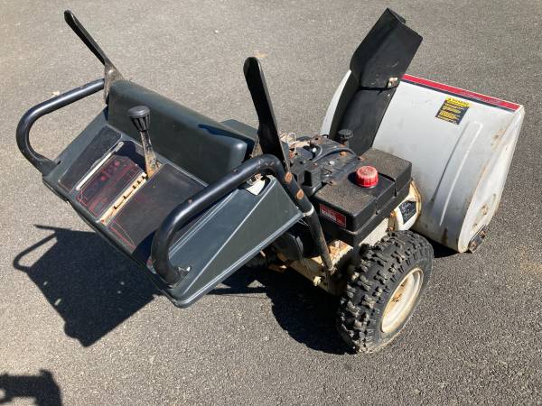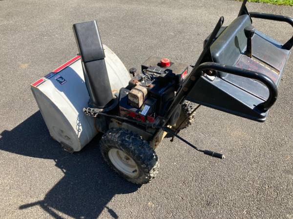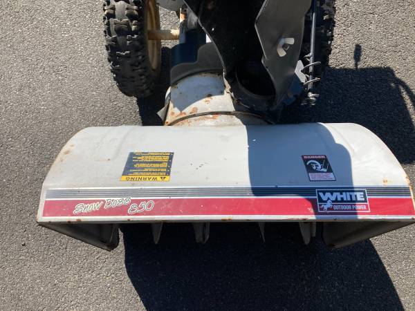 White snow boss 850 2 stage snowblower in working condition. 8 hp, 26 inch path, six forward speed, and two reverse speed. This has working electric start, and a work light. Carb cleaned, and fresh oil. Ready to move some snow this winter.