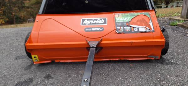 Agri-Fab 44" lawn sweeper. Is a heavy duty sweeper, in good working condition. Small hole in bag and small dents in bottom edge shown in pictures. These sweepers are $450 new. Selling for $150 cash...