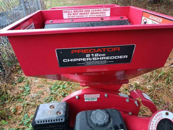 PREDATOR 6.5 Horsepower (212 cc) Wood Chipper/Shredder Purchased new 4 years ago. Only lightly used, and worked very well, but hasn't been started or used in 2 years. In overall good, used...