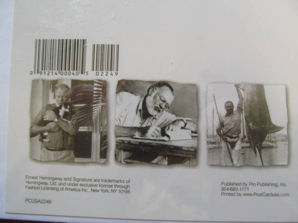 Five individually wrapped, still sealed Ernest Hemingway Note Cards. each 5x7 card has an envelope included. The Hemingway Home is selling a pack of 4 online for $16. New, in mint condition. Sorry...