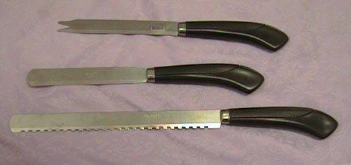 2. Quikut stainless, 3-pc set, made in the USA, brown handles $2