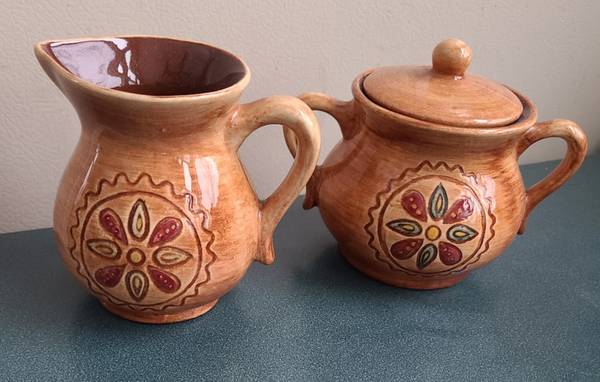 Here is a cream and sugar set of Pennsburg Pottery. There are no chips or cracks. Pick up in Pottstown. $10