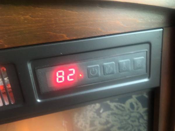 Infrared quartz fireplace, remote control and movable - on wheels, adjustable temp - can be used with zero heat for ambience. Energy efficient - 24" x 24" x 9". Comes with original paperwork. Paid...