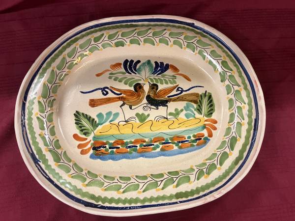 I SEE ALOT OF CHICKENS ON THERE POTTERY BUT NOT ALOT OF BIRDS LIKE THESE. ITS IN PERFECT CONDITION.