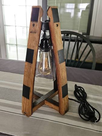 I created this industrial-style lamp using authentic wine barrel staves that bring warmth, character, and a story to your decor. This unique piece features: