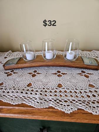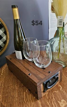 I handcrafted these unique items mostly from genuine California wine barrels. The red staining you see on the items is from the actual red wine that was stored in the barrels.