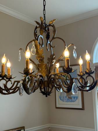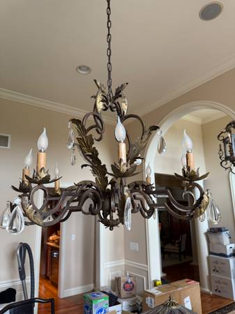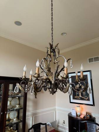 Metal and crystal very artistic chandelier. If You see my ad on Craigslist, the item is still for sale. I will take the ad down promptly once item is gone. Item is for pick up only, no shipping....