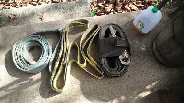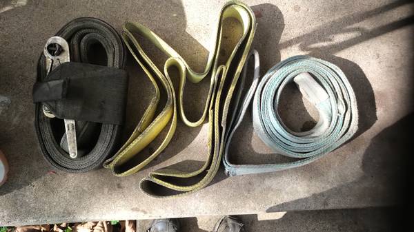 heavy duty straps. and one railroad ratcheting tie down. in great shape. cash only. serious inquiries only. thanks.