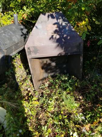 Used fireplace box. Decently heavy steel with side heat vents. Has rust, but still pretty solid. Dimensions are in pics. Probably weighs 150 - 200lbs.
