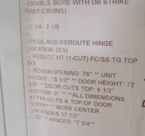 Door Unit Size Overall: 33 5/8" x 76 1/8"
