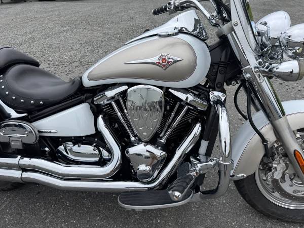 HIS BIKE HAS VANCE AND HINES EXHAUST AND IS LOADED UP WITH OEM KAWASAKI PARTS THAT ARE FOUND ON THIS LT MODEL SUCH AS A PAIR OF SADDLE BAGS, BACK REST AND WIND SHIELD