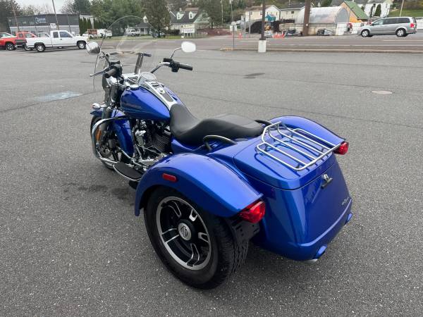 2019 HARLEY DAVIDSON FREEWHEELER TRIKE THIS ONE HAS THE POWERFUL 114CI M8 ENGINE AND 6 SPEED TRANSMISSION WITH REVERSE AS WELL AS RDRS THIS IS A SHARP LOOKING BIKE IN BLUE MAX COLOR WITH ALL THE...