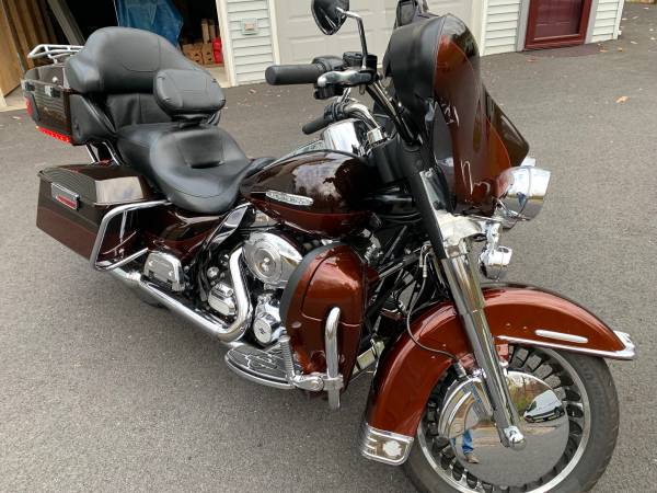 2011 Harley Davidson FLHTK Electra Glide Ultra Limited. Beautiful two tone dark/light candy root beer. In excellent condition. Brand new lithium ion 700 ca battery. New inspection good till 9/26. Lots of extra chrome. Upgraded LED lights. Only 22k miles! Fall is a great time to ride, don’t miss this one. Transferable warranty good until 6/15/27. Comes with cover and hand pump for ride adjustment.
