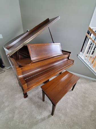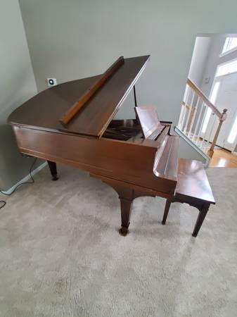 Free Piano. It's a beautiful instrument but will need some love if it will be used heavily. The finish is great on the piano and the matching stool. From the Baldwin serial number site I found, it looks like this instrument was made in 1905 - so it is 120 years old! Some of the keys need to be repaired and we have the pieces to do that. Some of the notes don't stay in-tune for a long time, so they may be another area for some fixes.